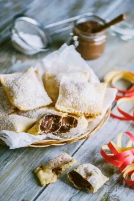 Bugie ripiene di Nutella -Come prendere due piccioni con una fava, anche a Carnevale: una volta preparato l?impasto delle chiacchiere puoi decidere di preparare anche delle sfiziose bugie ripiene che altro non sono che delle chiacchiere ripiene e chiuse a tortello. A casa mia imperversa il ripieno di Nutella ma garantisco che sono buonissime anche con la tua confettura preferita o con della crema. Una volta pronte cospargile di zucchero a velo e godetele.