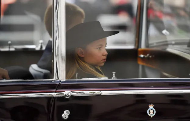 I due bambini in chiesa hanno tenuto un comportamento impeccabile. George in abito blu, da ometto, con la cravatta, seduto accanto al papà William. Charlotte con Kate. La principessina è stata immortalata mentre entrava nell'abbazia di Westminster con la grazia e con la compostezza che la circostanza richiede ed è apparsa impeccabile nella sua mise scura: un cappellino a falde larghe, scuro con un fiocco dello stesso colore. I capelli biondi sciolti sulle spalle, un cappotto scuro al ginocchio abbottonato fino al colletto di velluto. E poi quella spilla: anche lei ha voluto omaggiare l'adorata “Gan Gan” - il nomignolo che i piccoli di Palazzo avevano dato alla bisnonna - proprio come fanno le principesse già grandi, e ha per questo indossato il gioiellino a forma di ferro di cavallo e incastonato di diamantini per ricordare l'amore per questi animali che la bisnonna nutriva e che la nipotina condivide. Il primo gioiello indossato in pubblico, regalatole proprio da Elisabetta.