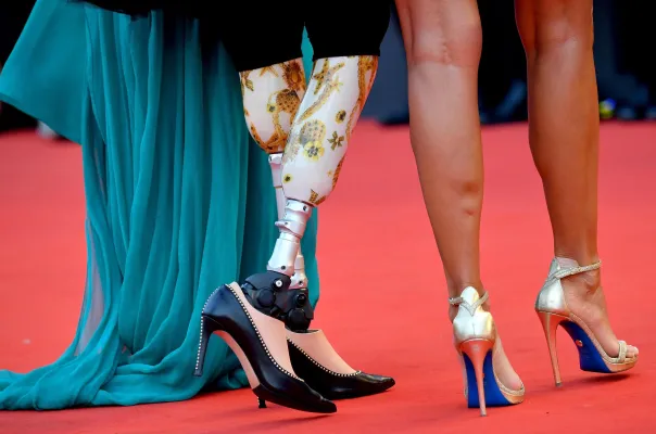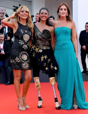 È il caso, ad esempio, di Giusy Versace, l'atleta paralimpica che nel 2005 a 28 anni perse le gambe in un incidente automobilistico. Giusy è arrivata al Lido con le sue amiche e colleghe Jo Squillo e Francesca Carollo per presentare il docufilm "Donne in prigione si raccontano", un viaggio nella sezione femminile del Carcere di San Vittore di Milano. E ha scelto di presentarsi con le sue protesi ben visibili, muovendosi perfettamente a suo agio sopra dei vertiginosi tacchi a spillo. Non solo. Giusy, che indossava un abito nero con delle stelle dorate, ha ornato anche le sue protesi di disegni e decorazioni, rendendole più glamour che mai.