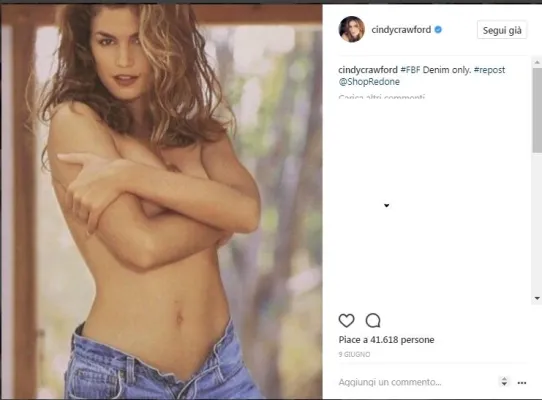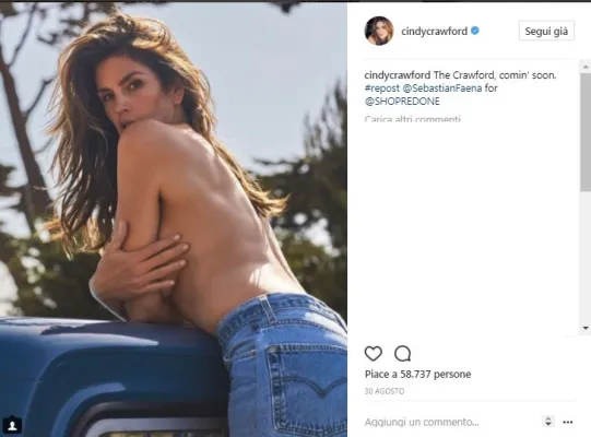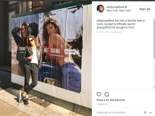 Cindy Crawford regala agli amanti del passato un tuffo negli anni 90 presentando una capsule collection con RE/DONE che include un jeans, una T-shirt e una felpa. . Cindy protagonista non solo come designer ma anche come modella ha posato con un top bianco e un paio di jeans, come nel leggendario spot Pepsi, il risultato è stato strepitoso, la ex top model a 51 anni, appare ancora in perfetta forma e non sembra che siano passati 27 anni. Foto Instagram e https://shopredone.com/
