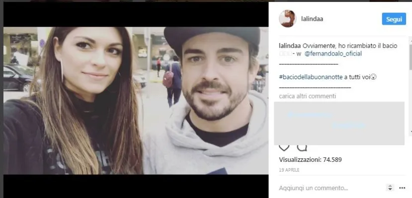 Dopo 4 anni di relazione con Valentino Rossi, la modella Linda Morselli, torna in pista con un altro campione. Da circa un anno è felicemente fidanzata col pilota spagnolo Fernando Alonso. Sul suo profilo Instagram la modella dedica al suo nuovo amore parole dolcissime: "Quello con la A maiuscola .
