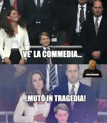 E ora che l’Italia si è aggiudicata la vittoria del campionati Europei si scatenano i meme, i più esilaranti sono quelli che hanno preso di mira i reali d'Inghilterra.