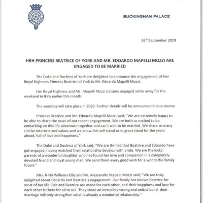 Ad andarci di mezzo sarà Beatrice di York, la primogenita di Andrea, che nel 2020 convolerà a nozze con Edoardo Mapelli Mozzi. Niente Royal Wedding per lei a poco più di un anno dal matrimonio, quello sì Royal, della sorella minore Eugenia: per Beatrice tutto molto ridimensionato, niente diretta tv, niente commento degli esperti di etichetta e della famiglia reale, soprattutto niente soldi da parte dei contribuenti.