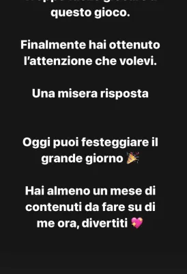 Il rapper, stavolta, però reagisce. "Troppo facile giocare a questo gioco. Finalmente hai ottenuto l'attenzione che volevi. Una misera risposta. Oggi puoi festeggiare il grande giorno. Hai almeno un mese di contenuti da fare su di me ora, divertiti", scrive il rapper nelle stories su Instagram. "Ieri ho visto una persona che conosco da anni e che è diventata un meme vivente", spiega Fedez riferendosi all'addetto alla sicurezza. "Ci ho fatto un video di 10 secondi. E quindi? Sono un mostro che cavalca" la situazione. "Ma anche se fosse, tu fai la stessa cosa. Tu fai di peggio", dice rivolgendosi lla Lucarelli.