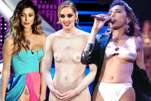 Ogni anno sul palco di Sanremo il pubblico assiste a una gara non solo canora ma anche a una sfida al look più scandaloso. Pizzi, trasparenze e inchini che mettono in mostra ciò che la scollatura a stento trattiene e poi incidenti, più o meno voluti, con abiti che si spostano e rivelano le forme. Ecco un elenco delle mise che hanno lasciato il segno.