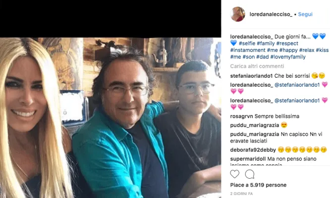 Cosa c'è di più evidente di una fotografia? Forse, soltanto alcuni hashtag che si prendono il compito di commentare per conto di Loredana Lecciso l'ennesimo colpo di scena della storia infinita di quel triangolo in cui gli altri due lati sono Al Bano Carrisi e Romina Power. Così, complici le festività estive, ecco l'ex coppia comparire di nuovo insieme sull'account Instagram della Lecciso. Lei, aria soddisfatta e sorriso sornione, a corredo di un'immagine con Al Bano e con il loro figlio pù piccolo, AlBano yunior, detto Bido, scrive: #family #respect #instamoment #me #happy #relax #kiss#me #son #dad #lovemyfamily . Il tutto in un tripudio di cuori blu.