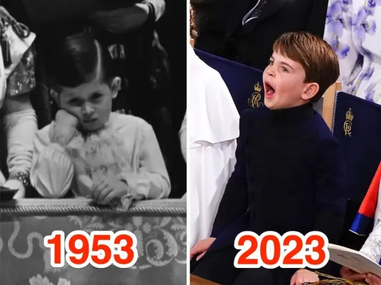 Ma niente panico, nessuna etichetta è stata infranta. Il piccolo Louis ha un rispettabile precursore: avete mai visto Re Carlo durante l'incoronazione di sua madre, la Regina Elisabetta?