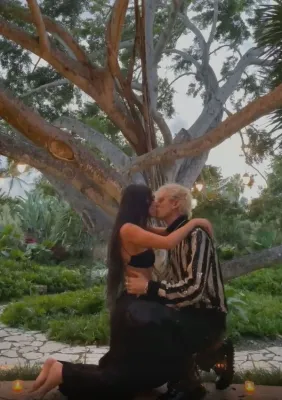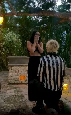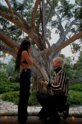 Come testimoniato da un video condiviso dalla coppia su Instagram, lui si è inginocchiato ai piedi della bellissima Megan offrendole l’anello di fidanzamento. Lei ha risposto "sì" e i due si sono promessi amore eterno bevendo il loro reciproco sangue. Un rito che ricorda quanto fatto da Angelina Jolie e Billy Bob Thornton: i due attori ai tempi della loro matrimonio (2000 -2003), usavano tenere al collo ognuno una collana con un ciondolo costituito da una piccola ampolla contenente uno il sangue dell’altra.