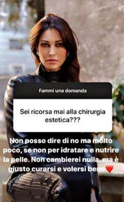 43 anni nel 2020, la modella e showgirl lascia cadere un tabù: quello che, ancora oggi, porta molte celebrità a negare di aver "migliorato" il proprio fisico col ricorso agli specialisti. Manuela Arcuri risponde a chi da tempo la punzecchia per i suoi ritocchi. E sui social ha permesso ai fan di farle la domanda: Sei ricorsa mai alla chirurgia estetica?