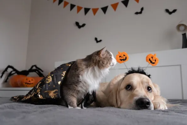 Perché non vestire anche i nostri amici a quattro zampe per la festa di Halloween? Simpatici e giocherelloni saranno sicuramente felici di accompagnare i bambini nelle scorribande porta a porta per il “dolcetto o scherzetto?”. Ecco una carrellata di semplici maschere per rendere i nostri animaletti degli irresistibili mostri.