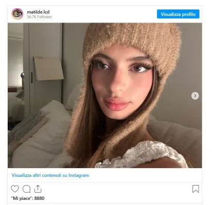 Occhi grandi ed espressivi come quelli del padre e poi tantissimo, soprattutto fisicamente da parte di madre. Però in tanti hanno notato questa straordinaria somiglianza con l'altra top model. Con Emily ha in comune di certo la bocca carnosa ma anche lo sguardo. La mamma poi di recente l'ha difesa dagli hater che avevano insinuato avesse le labbra rifatte: "Ragazzi ma Matilde ha 16 anni appena compiuti. Ma che ritocchi? Si trucca, si fa i capelli, si veste valorizzandosi, ma è solo bella così. Dovete farvene una ragione".