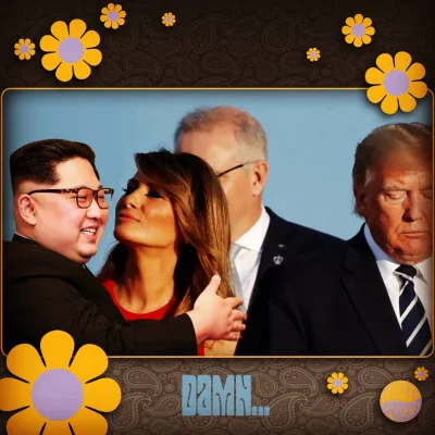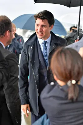 La foto è resa più piccante dal fatto che Donald Trump, con un'espressione corrucciata, sembra tiri via la moglie per una mano mentre lei bacia il bel Trudeau.