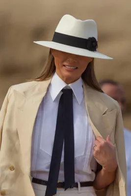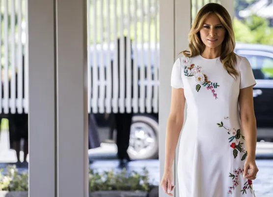 Melania Trump ha fatto diffondere la sua foto ufficiale da First Lady della Casa Bianca e la sorpresa è stata per la sua scelta di una “power pose” con uno sguardo sicuro e quasi feroce reso più intenso dal bianco e nero. Nessun sorriso e un’immagine in deciso contrasto con la fotografia ufficiale del 2017 in cui l'ex modella slovena aveva optato per accogliere il primo mandato del marito con un timido mezzo sorriso e a braccia conserte. Vestita in tailleur da business woman scuro e camicia bianca aperta sul collo, la 54enne terza moglie di Donald Trump è stata ritratta con le dita delle mani appoggiate su un tavolo a specchio, sullo sfondo troneggiante l'obelisco di George Washington.