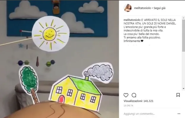 Melita Toniolo è finalmente diventata mamma, lo testimonia l'ultimo post su Instagram dove con un tenero commento annuncia la nascita del piccolo Daniel avuto dal comico Andrea Viganò:" E' ARRIVATO IL SOLE NELLA NOSTRA VITA, UN SOLE DI NOME DANIEL. L'emozione più grande,più forte e indescrivibile di tutta la mia vita. La cosa più bella del mondo. Ti amiamo alla follia piccolino. Infinitamente."