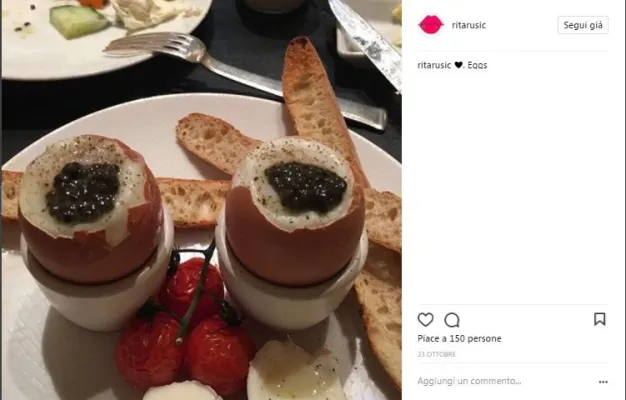 Nel mentre la ex moglie Rita Rusic, 57 anni, postava la foto della sua lussuosa colazione composta da uova alla coque insaporite da caviale beluga e crostini.