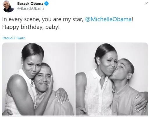 L'ex first lady può consolarsi con gli auguri del marito postati sui social. Si tratta di una serie di scatti in bianco e nero che ritraggono la coppia in atteggiamenti affettuosi e spiritosi. Poi la dedica di Barack: "In ogni scena, tu sei la mia stella @Michelle Obama! Buon compleanno piccola!".