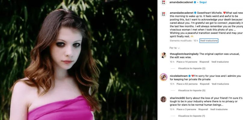 Sapeva che la possibilità di morire era alta Michelle Trachtenberg, la star di “Gossip Girl” trovata morta in casa ad appena 39 anni dalla madre. A rivelarlo è stata l’amica Amanda de Cadenet, fotografa, che ha scritto un post su Instagram, post che poi ha modificato eliminando alcune frasi che però erano già state riportate da diversi giornali. Nel post si legge: “Michelle, tesoro. Mi sono svegliata con questa terribile notizia. Mi sembra strano e orrendo pubblicare questo post, ma voglio riconoscere la tua morte, perché ci tenevo a te. Ti ricorderò sempre come la donna giovane e vivace che eri quando ho scattato questa foto”. Poi la parte eliminata nella quale si leggeva così: “Vedendo il tuo viso dal letto d'ospedale durante la chiamata recente su FaceTime, anche se non sembravi più tu, ho notato che la tua dolcezza e il tuo senso dell'umorismo erano ancora lì. Sapevi che la possibilità di morire era alta e mi dispiace che sia andata in questo modo. Spero che il tuo spirito possa finalmente riposare in pace”.