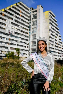 Stavolta la corona di Miss Italia è andata a una ragazza che arriva da uno dei quartieri più difficili del Paese: Scampia, con i suoi problemi e il suo grande impegno per uscire dallo stereotipo. Per questo Zeudi Di Palma, occhi bellissimi e intensi, è a buon diritto il simbolo di un'Italia che vuole cambiare, e mostra le capacità, le creatività oltre alla tradizionale bellezza. Zeudi ha infatti mostrato di sapersela cavare più delle altre, sia che si tratti di interagire sui social, di rispondere alle domande dei giornalisti, ma anche di prestare aiuto per strada - questo era il format da mini serie tv di Miss Italia 2021 - a chi ne ha bisogno.