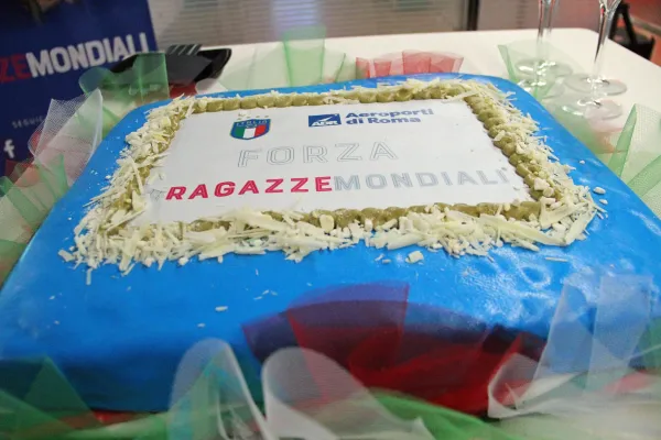 La torta preparata all'aeroporto Leonardo da Vinci di Fiumicino per la nazionale femminile di calcio.