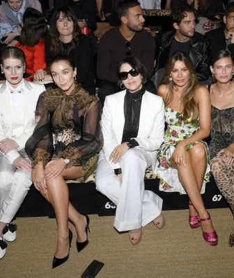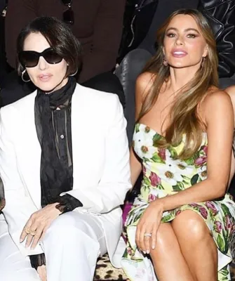 Via la frangia, via i capelli lunghi. La Bellucci che il 30 settembre compirà 55 anni sfoggia un caschetto corto, riga laterale, chic più che mai. Un bob classico che lei porta a spasso con un tailleur classico sdrammatizzato da una camicetta trasparente. Bellissima. Nel parterre di ospiti dei due stilisti appare anche un'altra bellezza del cinema, l'attrice americana Sofia Vergara.