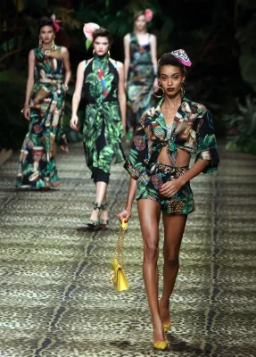 In quanto alla nuova collezione, Dolce e Gabbana lanciano la Sicilian Jungle dove natura tropicale e artigianato italiano regnano sovrani. "È una collezione molto felice, riflette ciò che siamo, due persone felici del nostro lavoro e della nostra vita" dice Stefano Gabbana. E in passerella questa felicità si vede: se "Jungle è il mondo e la Sicilia sono le nostre radici", il risultato è un ibrido tutt'altro che scontato.