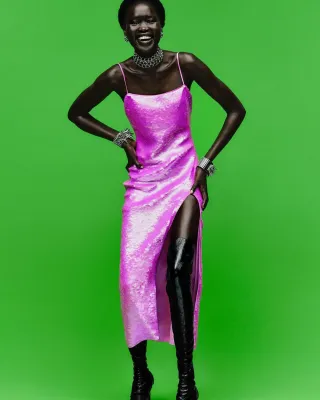 L'effetto è garantito, eppure l'abito di paillettes rosa è fatto di poliestere riciclato e il completo dal taglio sartoriale è realizzato con fibre ricavate da materiali di scarto. Si tratta della nuova collezione di H&M, Innovation Circular Design Story, che celebra la sostenibilità e la gioia. E che fornisce idee di outfit per le feste senza spendere troppo. Realizzata utilizzando materiali riciclati e riciclabili all'avanguardia e con la massima attenzione all'adattabilità e all'utilizzo, la collezione ha due super testimonial.