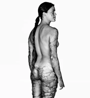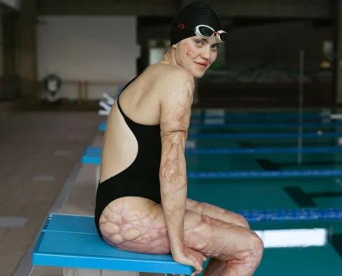Nonostante la sua pelle porti segni evidenti della soffernza patita a causa della meningite Veronica non di temere il suo corpo