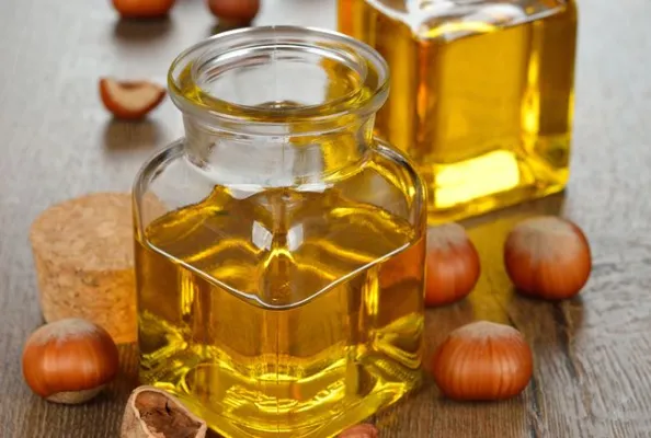 (www.melarossa.it) Olio di nocciola per le pelli grasse: L'olio di nocciola è particolarmente indicato per la pelle grassa e acneica perché aiuta a regolarizzare l'eccesso di sebo, combatte i punti neri e restringe i pori. E' molto più fluido dell'olio di mandorle, quindi si assorbe molto facilmente e non lascia la pelle untuosa. E' anche l'olio di bellezza ideale per trattare gli arrossamenti della pelle: calma, protegge, idrata e nutre la pelle secca, sensibile e spenta. E' indicato sia per il corpo che per il viso e può essere usato quotidianamente in alternativa alla crema da giorno. Attenzione al rischio di allergie se sei intollerante alle nocciole. Copyright: Shutterstock.com / Olyina