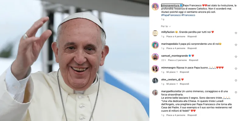 Paola Perego condivide una foto con Papa Francesco e scrive: "Da oggi saremo tutti più poveri senza la tua guida e i tuoi insegnamenti". Gianni Morandi è di poche parole: “Gli volevamo tutti bene…” .