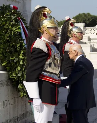 Napolitano rende omaggio al milite ignoto e poi assiste alla parata