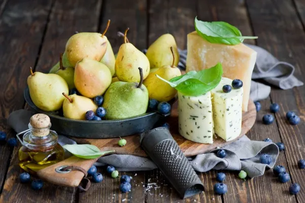 Se oggi pera e formaggio è un connubio che va di moda, un tempo, ricorda la Fondazione Campagna Amica, era cibo di pastori e contadini, considerato “rozzo” e poco adatto ai “palati raffinati dei ricchi”, fino a quando nel Cinquecento non arrivò anche sulle tavole dei nobili, che già non disdegnavano la frutta, fra cui la pera, fra gli altri molto presente nell’arte, nelle nature morte: “Proprio loro, scoprendo la bontà del cacio, cominciarono a proporlo alla fine del pasto, come alimento da conversazione, accompagnato dal vino e, per caso, anche dalla frutta”, fra cui, per l’appunto, la pera.