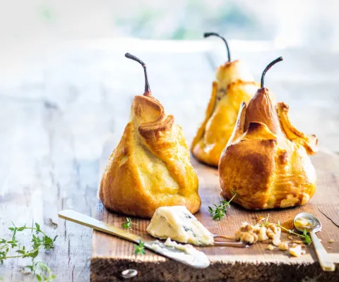 Tartelletta con pera caramellata e formaggio erborinato © Taste