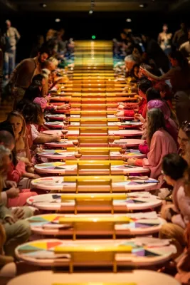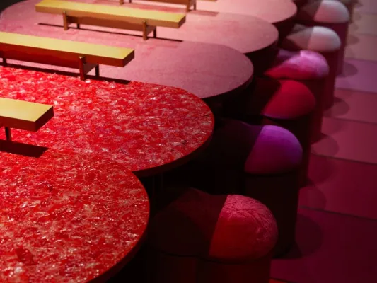 L’evento, che andrà in scena fino a settembre, è un modo provocatario per invitare le persone sedute a un grande e coloratissimo glockenspiel - il glockenspiel è uno strumento a percussione - che servirà anche da tavolo da pranzo intorno al quale dibattere di soluzioni per la salvaguardia della biodiversità.