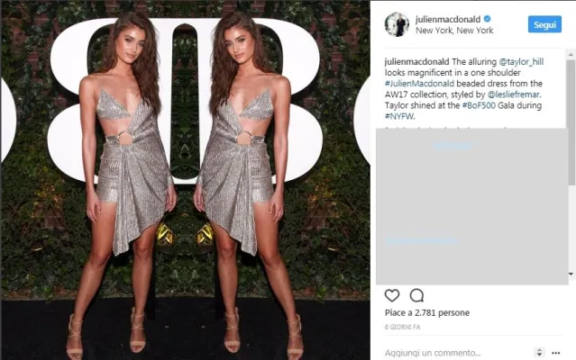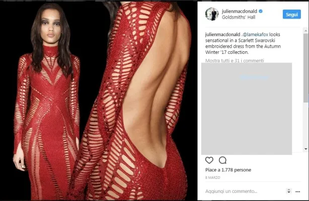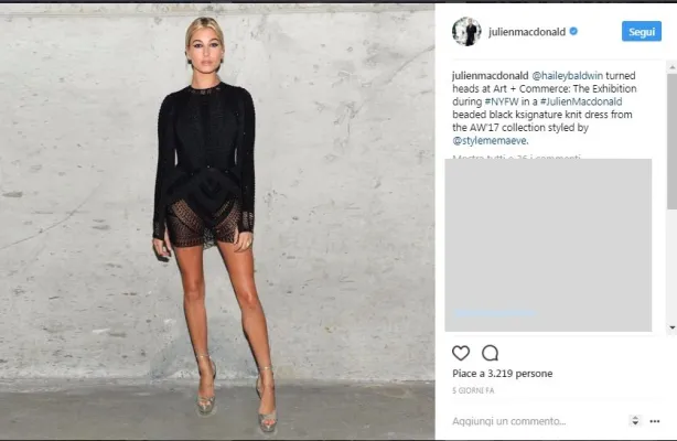 Gli abiti più sexy e amati dalle star sono quelli di Julien MacDonald. Famoso per la sua maglieria quando disegnava per Chanel e Lagerfeld dal 1996 al 1998 è divenuto poi direttore creativo di Givenchy e ha disegnato le collezioni Haute-Couture e Pret-a-Prorter. Dal 2004 si dedica esclusivamente alla sua linea famosa per essere un tripudio di reti e trasparenze, il suo stile ha conquistato cantanti di fama mopndiale come JLo e Rihanna e modelle come Alessandra Ambrosio e Hailey Boldwin che hanno sfilato per lo stilista in occasione della recente fashion week. Gli abiti fatti in alluminio, seta, vetro, plastica, nylon hanno un prezzo che può superare i 25.000 Euro. Foto instagram