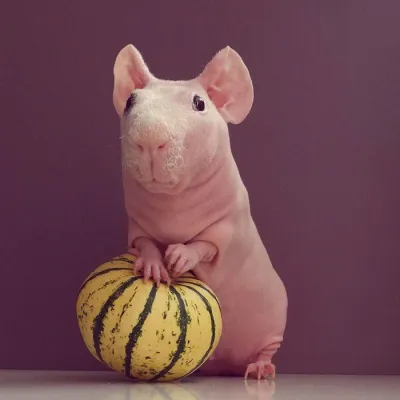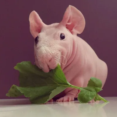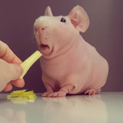 Potrebbe non piacere a tutti ma lui, una cavia nuda di razza Skinny, sembra non curarsene. Con l'aiuto del suo padroncino, che la vizia e coccola con ottimo cibo, ha realizzato un book fotografico curioso e originale. Il roditore, privo di peli se non sulla parte superiore del musetto, ha posato con i cibi che piu' ama. Ludwig, questo il nome del "top model", che il suo padroncino fa sapere non avere nessuna passione per la musica, ama il cibo, senza alcuna eccezione.