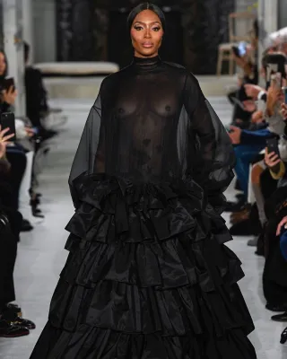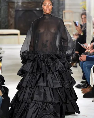 La Venere Nera, nonostante i 48 anni, sfila a Parigi per l’Haute Couture di Valentino e chiude lo show raccogliendo più applausi rispetto a colleghe ben più giovani come le gettonatissime Kaia Gerber Natalia Vodianova e Mariacarla Boscono.
