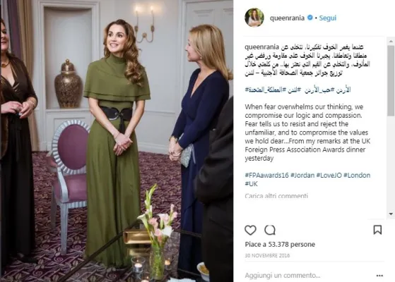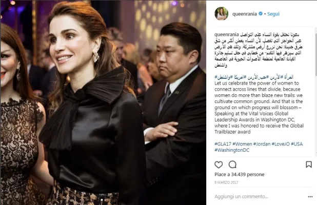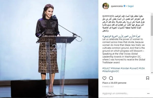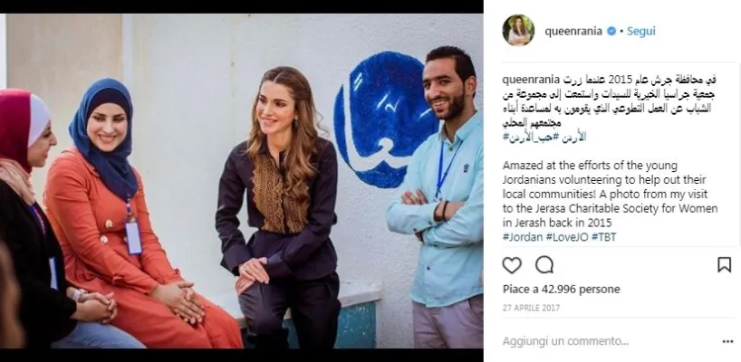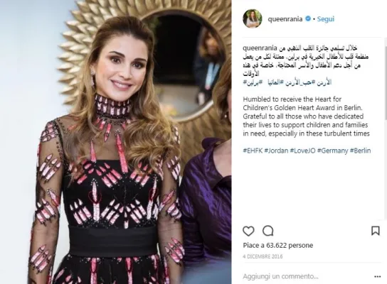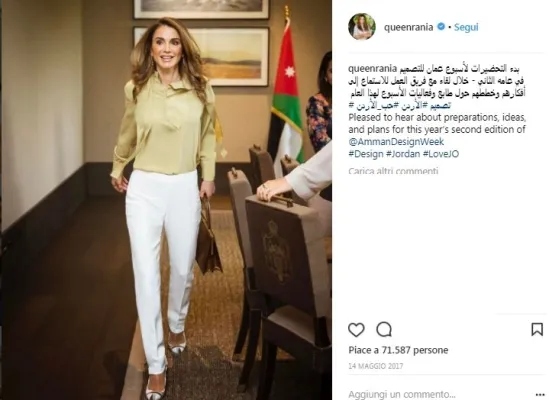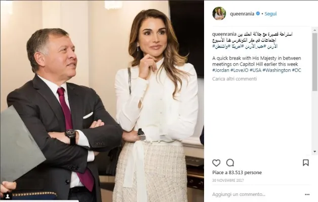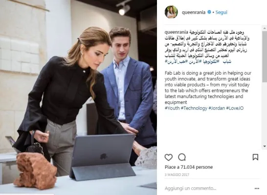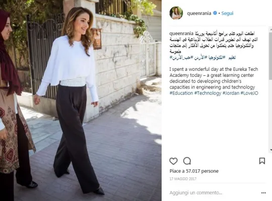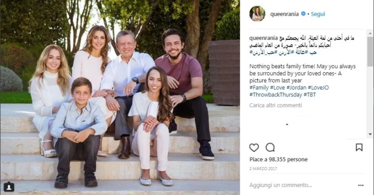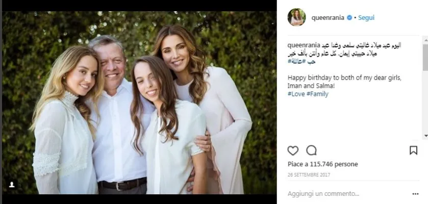 Amante della tecnologia ha saputo usare i social raggiungendo 4 milioni di follower su Instagram e quasi 10 milioni su Twitter. Queen Rania ha saputo conquistare i suoi fan mescolando sapientemente le immagini tratte dagli impegni pubblici e gli scatti della vita privata con il marito e i quattro figli: Hussein, 23 anni, Iman, 21 anni, Salma, 17 anni e Hashem, 12 anni.