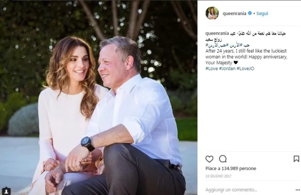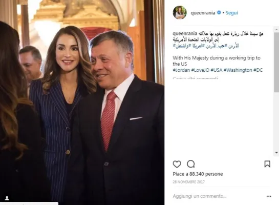 Rania di Giordania, nata 47 anni fa in Kuwait da genitori palestinesi incontrò quello che divenne il Re Abd All'h II nel 1992 in una cena tra amici, sei mesi dopo si sposarono.