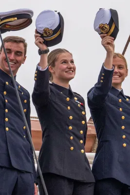 Prima di scendere dalla nave Elcano, tra gli applausi del pubblico, Letizia ha mandato un bacio con la mano a Leonor che la osservava dalla terrazza assieme ai compagni. Una volta sbarcati, i reali, visibilmente emozionati, si sono fermati sulla banchina davanti alla nave mentre Leonor salutava sventolando il berretto dell’uniforme militare. La regina Letizia, a quel punto in lacrime, ha continuato a salutare la figlia con la mano mentre il re l’ha abbracciata per consolarla.