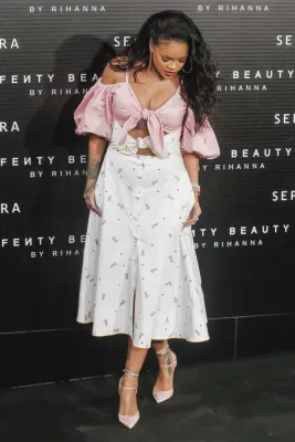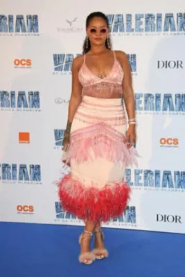 Abitino rosa con ampia scollatura, che fa quasi fatica a contenere le nuove, generose forme della popstar delle Barbados. Nelle ultime settimane Rihanna ha esibito un corpo generoso quanto a curve, ed e' stata anche ferocemente criticata per questo. Normale cambiamento fisico? O conseguenza della vita selvaggia degli anni passati? Sia come sia, e' sempre molto bella, anche se la sua silhouette non e' piu' quella della giovanissima aspirante cantante che strego' il suo mentore Jay-Z (rischiando di far saltare il matrimonio del rapper e produttore con Beyonce')