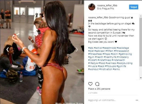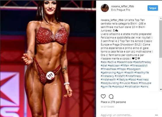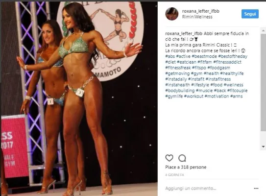 Roxana ha debuttato a giugno, al Rimini Wellness 2017, la più grande fiera del benessere e dello sport, dove ha conquistato il secondo posto nella categoria Juniores e il primo nella categoria -166 bikini Ifbb.