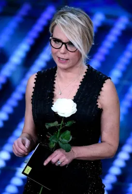 Una Maria De Filippi floreale per l'avvio della terza serata del Festival (Ansa)