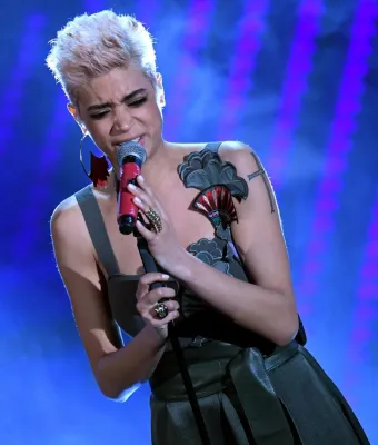 Giusy Ferreri, forse il suo primo look davvero azzeccato durante questo Sanremo (Ansa)