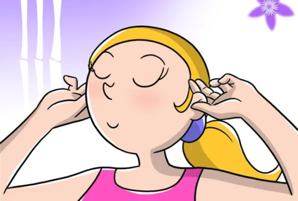 (www.melarossa.it) Massaggio per le orecchie: Seduta con gli occhi chiusi, pizzica le orecchie con l'indice e il pollice e tira leggermente i padiglioni verso l'esterno. Poi, con l'indice e il medio, strofina la parte ossea dell'orecchio. Infine, tappa le orecchie con i palmi delle mani e tamburella con i 2 medi. Illustrazione: Marcello Carriero