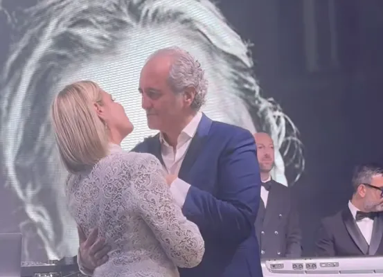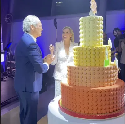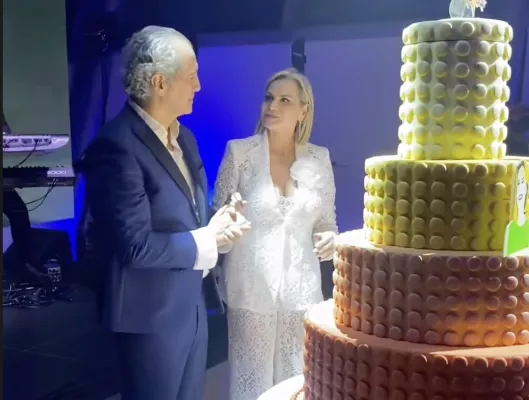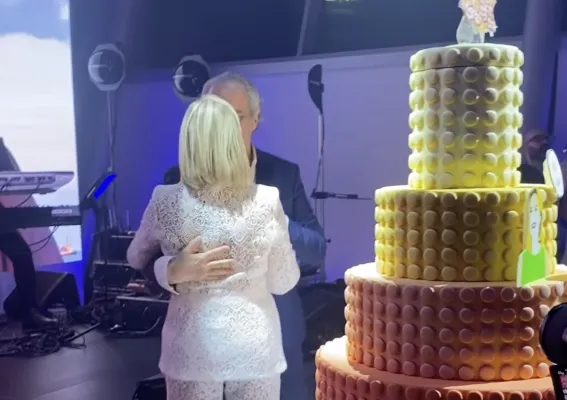 Così Simona Ventura e Giovanni Terzi hanno accolto amici e familiari al Gadames 57, locale milanese a più piani. Davanti a loro una torta gigantesca e un muro di telefonini che li hanno ripresi nelle fasi più salienti della festa, come quando si sono intrecciati in un abbraccio e hanno ballato appassionatamente. Intanto Alba Parietti e Paola Barale sono state protagoniste di un divertente siparietto: mentre cercavano di imboccarsi a vicenda, hanno finito per sporcarsi vestiti e borsa.