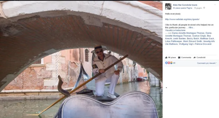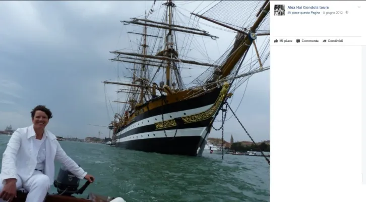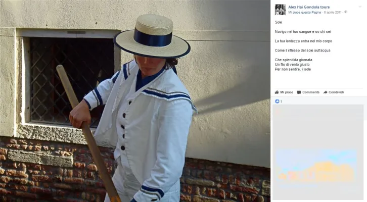 Ha iniziato la sua attività da gondoliera indossando lunghi abiti neri da sera. Oggi non ha abbandonato il remo e la sua amata Laguna, ma ha annunciato di voler essere Alex.