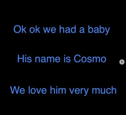 Su Instagram l'attore e autore del Saturday Night ha postato un cartello nero con su scritto: "Ok, ok, abbiamo avuto un bambino. Il suo nome è Cosmo. Lo amiamo molto". Svelato quindi anche il nome del neonato, un nome decisamente originale come tante volte le celeb ci hanno abituati.