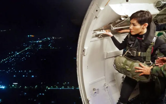 Alcune delle immagini, pubblicate dai media locali, mostrano l'ex infermiera dell'Esercito ai comandi di un aereo da caccia, impegnata a sparare con una mitragliatrice in un poligono di tiro e accanto al re in tenuta mimetica.