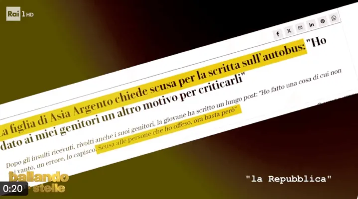La 23enne figlia di Morgan e di Asia Argento, prima di ballare il suo tango e ricevere l'apprezzamento della giuria, ha raccontato con evidente commozione uno dei momenti più difficili della sua vita: "Uno degli episodi che ricordo con più dolore è stato quando da ragazzina, mentre tornavo da scuola, ero sull'autobus con le mie amiche e ho pensato bene di fare dei disegnini sui sedili e poi postare una storia sui social. Subito sono usciti i titoloni di giornale che parlavano di vandalismo e ho guadagnato tanti follower per una cosa sbagliata che avevo fatto. Mi attaccavano tutti, qualcuno mi ha anche scritto "Ti avrebbero dovuto abortire". Cose che mi hanno fatto soffrire moltissimo. Pensavo che eliminandomi da Instagram avrei alleggerito la situazione. Avevo anche pubblicato delle scuse pubbliche. Ma la questione non si affievoliva. I mezzi pubblici mi hanno denunciata e la cosa si è ingigantita sempre di più finché ho rischiato che andasse sul penale come vandalismo. Però c’era la possibilità di fare i servizi sociali perché all'epoca, nel 2018, ero minorenne".