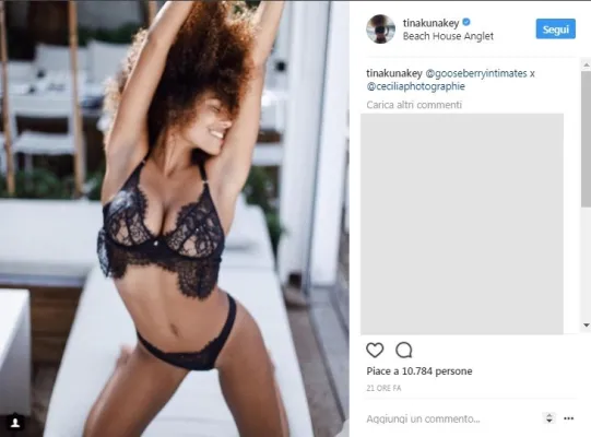 Tina Kunakey, 20 anni, continua a conquistare i fan con le sue foto sensuali, in particolare, il recente scatto postato sul profilo Instagram, dove la modella appare in perfetta forma con un costume da bagno su una bellissima spiaggia tropicale ha fatto incetta di like.